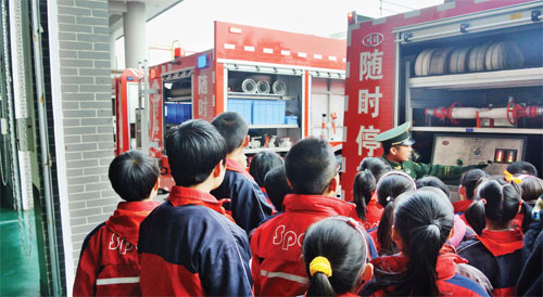 圖為消防官兵為學生講解消防知識 2月24日,原平消防大隊警營熱鬧非凡,身著消防戰(zhàn)斗服的孩子們神氣十足,高興地說:“ 長大了,我也要當一名消防隊員!” 當日上午10時,近百名小學師生進入原平市消防大隊參觀學習,零距離接觸消防官兵,學習消防知識,感受消防魅力。大隊全體官兵對小朋友們的到來表示熱烈的歡迎,并為小學生們上了一堂精彩的消防知識課。在活動中,官兵首先組織同學們參觀了官兵宿舍,為大家生動講解了消防文化知識、家庭防火常識、校園防火常識、火場逃生自救常識等內容。 同學們在官兵的帶領下,參觀了車庫及車輛器材、榮譽室、寢室等庫室。當大家看到整齊排列的各類消防車時,激動的心情難以抑制,紛紛圍著消防車看看這個、摸摸那個,愛不釋手。眼花繚亂的各類消防器材、裝備令同學們大開眼界。孩子們不時提出各種問題,官兵都一一作了解答,滿足了大家的好奇心。隨后,官兵還為大家演示了原地穿著戰(zhàn)斗服,面對難得的機會,孩子們躍躍欲試。幾位小朋友在官兵的幫助下,身著消防戰(zhàn)斗服神氣十足??吹剿麄儙洑獾哪?,大家給予熱烈的掌聲。 整個參觀活動中,小朋友們始終熱情高漲,通過走進消防隊參觀學習,不僅加深了他們對消防部隊的了解,也學習到了很多消防知識,真正達到了“教育一個孩子,帶動整個家庭,影響整個社會”的目的。(郝慧娟) (責任編輯:李冬梅) |