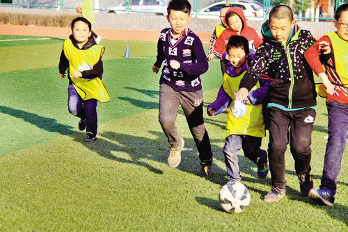 3月12日,原平農(nóng)校足球場內(nèi),小球迷正在進(jìn)行對(duì)抗訓(xùn)練。從小培養(yǎng)兒童熱愛運(yùn)動(dòng),熱愛足球,已成為時(shí)下一種教育理念。周末節(jié)假日兒童不再上各種培訓(xùn)班,踢足球,增體質(zhì),堅(jiān)定自信心,已成為一種習(xí)慣:我運(yùn)動(dòng),我健康,我是最棒的!(吉建平 攝)