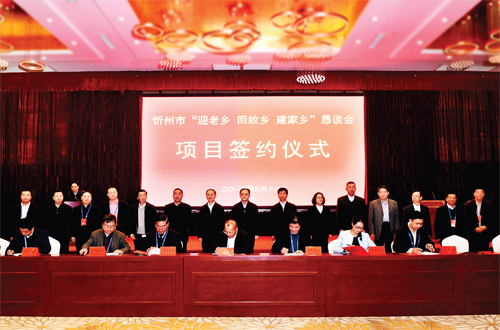 本報訊(記者 楊峰雷)3月18日下午,我市舉辦“迎老鄉(xiāng)、回故鄉(xiāng)、建家鄉(xiāng)”懇談會,來自全國28家山西商會的110多名負(fù)責(zé)人、企業(yè)家,與我市各級各相關(guān)部門負(fù)責(zé)人和企業(yè)家歡聚一堂,共商家鄉(xiāng)發(fā)展大計,并舉行了項(xiàng)目簽約儀式。市委書記李俊明出席并講話,市委副書記、市長鄭連生致辭,市委常委、副市長王士樺主持,各縣(市、區(qū))長、市直相關(guān)部門負(fù)責(zé)人參加了懇談會。