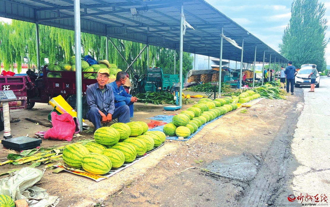 市場有回響,品質過硬銷路旺。在村里的瓜果交易市場,75歲的鄔培林攤位前,一排排個頭飽滿的西瓜格外顯眼。有著多年種植經(jīng)驗的他對市場行情了如指掌:“西瓜上市半個多月了,剛開始賣兩元一斤,現(xiàn)在是6角一斤,正在陸續(xù)降價?!彪m然價格隨上市時間有所回落,但西瓜品質好不愁銷路。