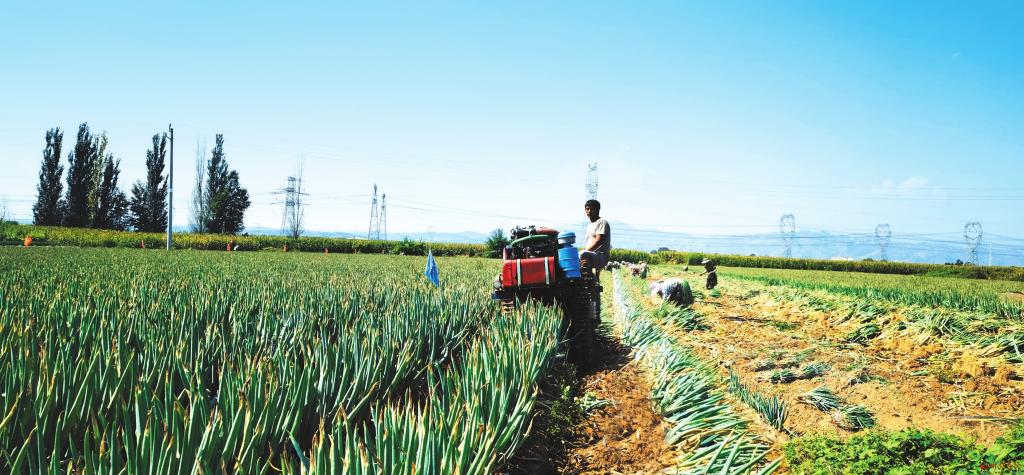 忻府區(qū)六石村大蔥喜獲豐收。(