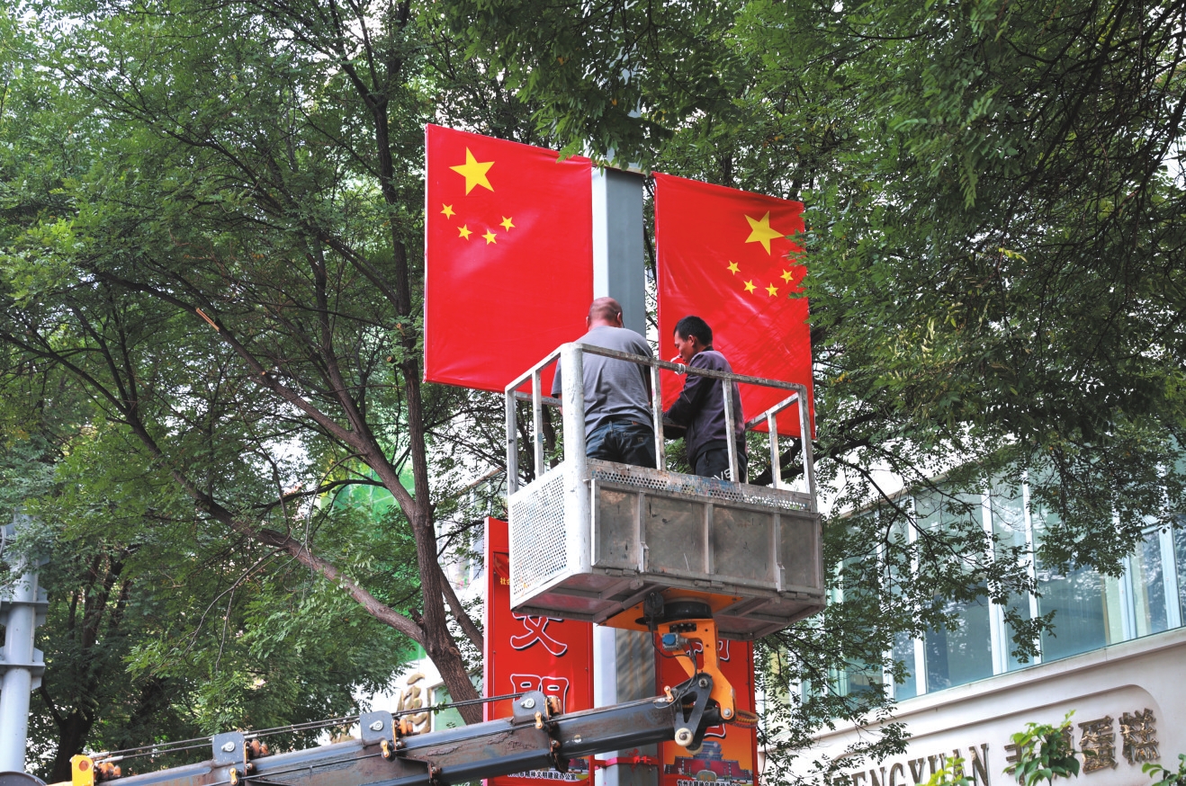 忻州城區(qū)街頭懸掛國旗,節(jié)日氛圍感拉滿。張存良攝