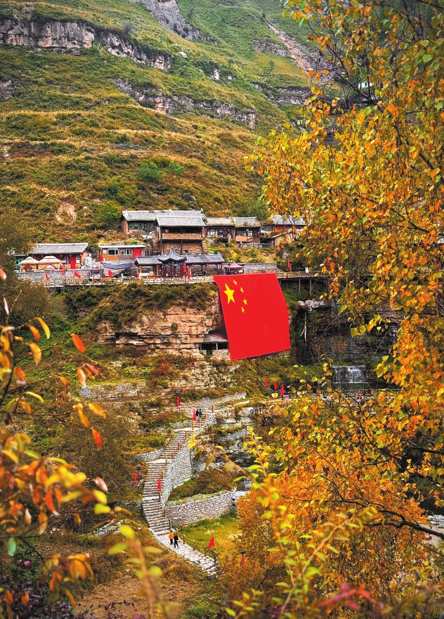寧武懸空村,迎風(fēng)舞動的五星紅旗分外奪目。吳光宇攝