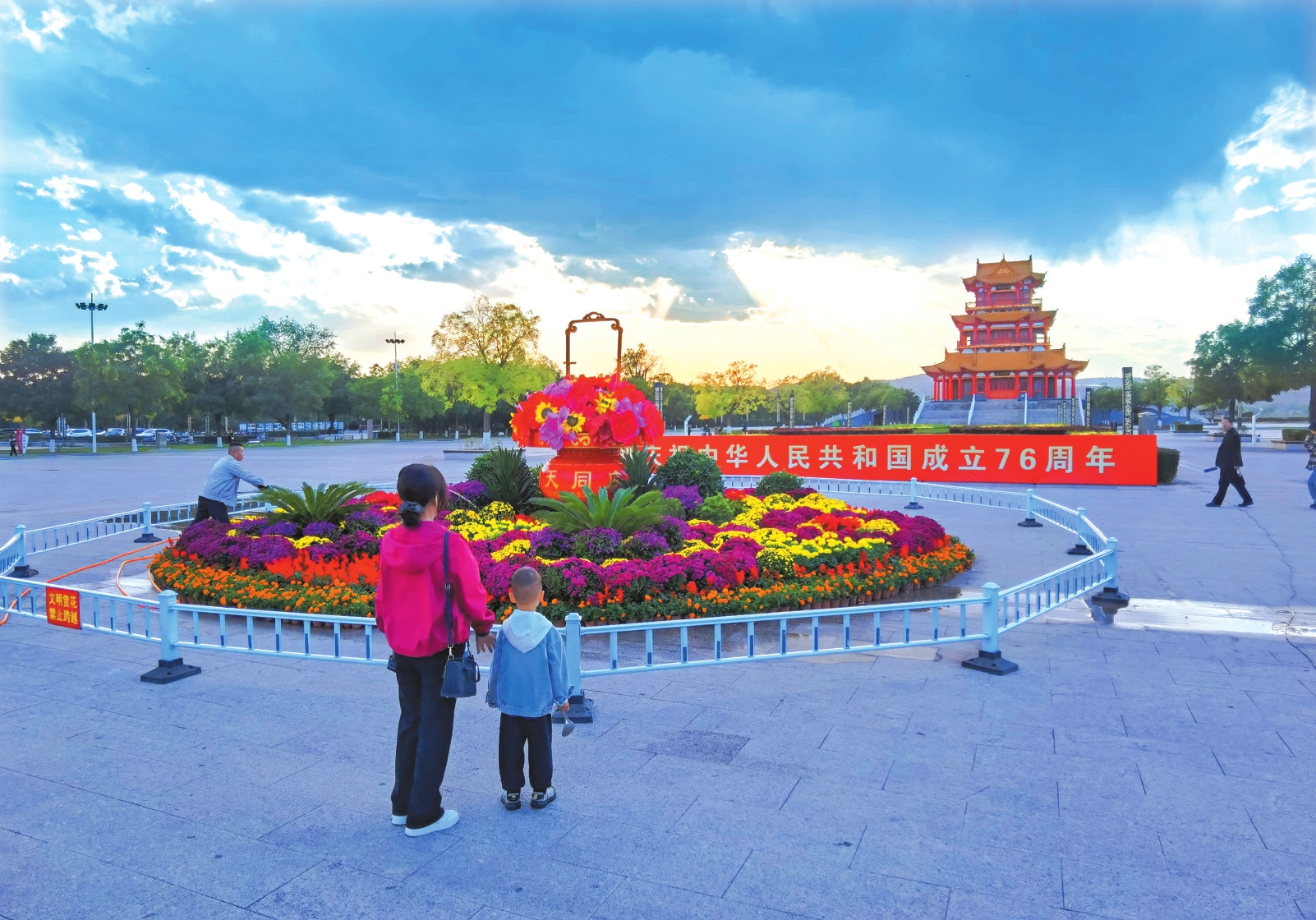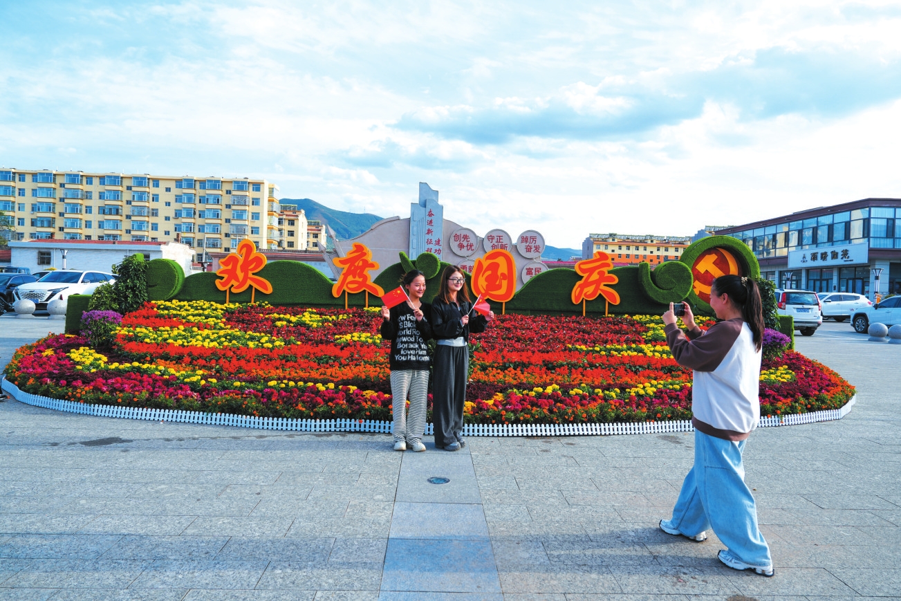 河曲縣臨隩公園國慶主題花壇。張玉明攝