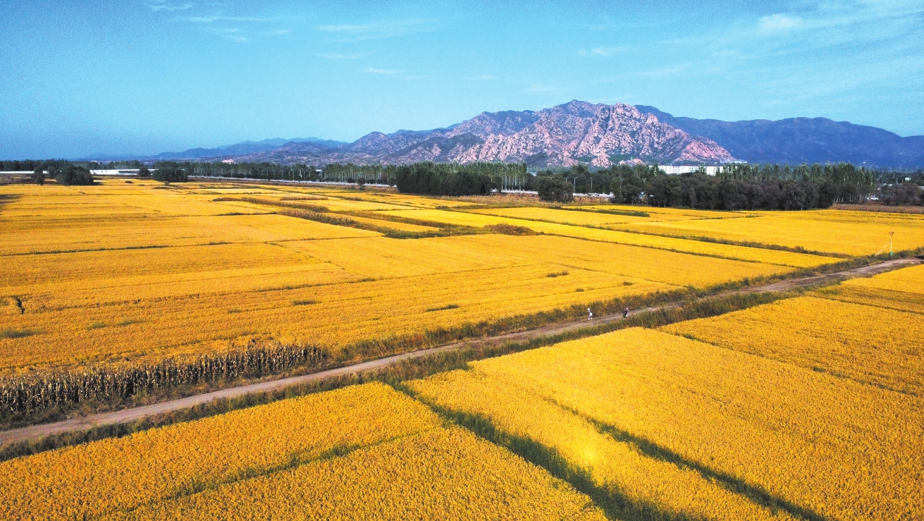金秋的原平市大庫狄村,萬畝稻田鋪展成一片金色海洋。褚 震攝