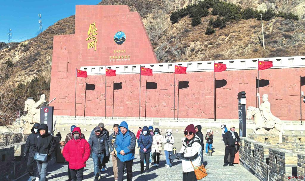 11月17日,雁門關(guān)景區(qū)雖然氣溫驟降,但擋不住游客前往旅游的熱情。來自全國各地的游客不懼嚴寒,游走在雁門關(guān)關(guān)隘兩翼,不時拍照打卡。(董應贊攝)