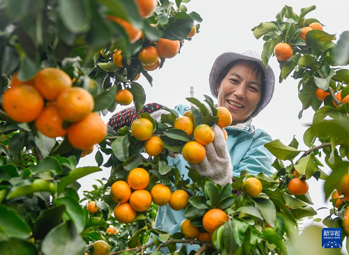 11月2日,湖南省永州市道縣蚣壩鎮(zhèn)興橋村村民在采摘沙糖桔。(新華社發(fā) 蔣克青 攝)