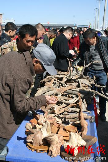 3月13日,原平市集貿(mào)市場(chǎng)上農(nóng)民正在賣形態(tài)各異廢棄的柏樹木根枝 他們變廢為寶促增收,很受市民喜愛收買。該市,采取多措并舉積極引導(dǎo)農(nóng)民增收致富,加快奔小康步伐。(趙月仁 攝)