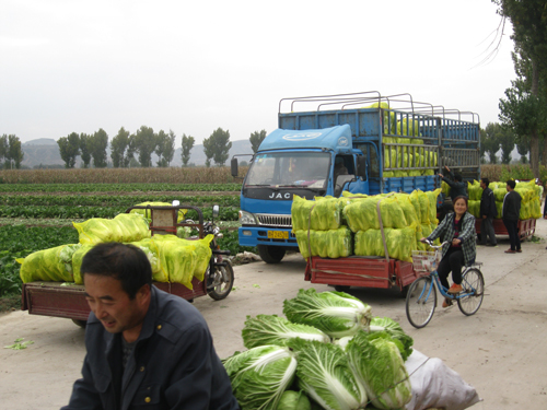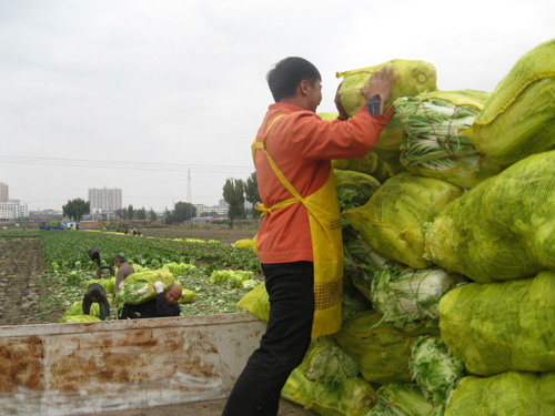 10月23日,河曲縣南園村大白菜種植戶忙著砍白菜、撕老幫、裝袋子,幫助內(nèi)蒙古準(zhǔn)格爾旗、伊金霍洛旗和本縣沙泉鄉(xiāng)的客戶裝白菜,熱鬧中洋溢著豐收的喜悅。該村充分利用土肥水富、交通便利等優(yōu)越條件,大力發(fā)展蔬菜產(chǎn)業(yè),形成了“一村一品”產(chǎn)、供、銷格局,成為晉陜蒙交匯地區(qū)蔬菜基地。特別是近千畝優(yōu)質(zhì)大白菜深受縣內(nèi)外經(jīng)銷商和消費者青睞,每年霜降前后,周邊市縣前來購買的菜販絡(luò)繹不絕。(賈金理攝)