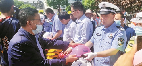 本報訊 為最大限度減少因交通事故造成的人員傷亡,5月14日,市公安局交警支隊聯(lián)合市保險業(yè)協(xié)會、太平洋保險忻州分公司和城區(qū)快遞、外賣企業(yè),舉辦以“一盔一帶”為主題的警企聯(lián)合勸導活動,在進行安全宣傳的同時,為途經的騎行市民發(fā)放安全頭盔。對駕乘摩托車不佩戴頭盔、駕乘車輛不按規(guī)定佩戴安全帶的交通違法行為進行勸導,積極倡導市民在騎電動自行車時佩戴頭盔。