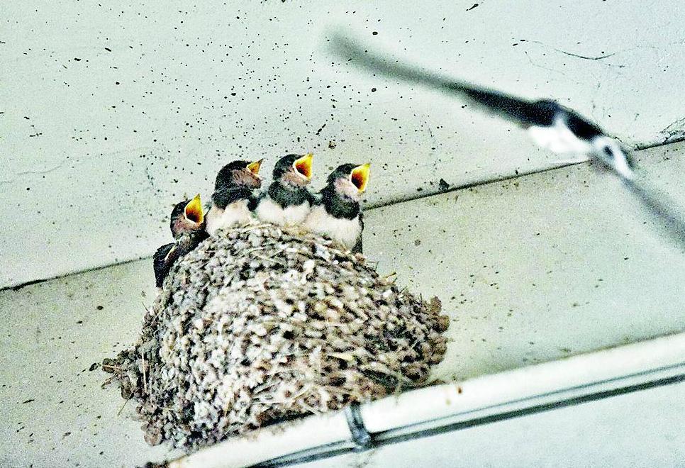燕子父母“落戶(hù)”的地方是千峰北路集祥美地西區(qū)2號(hào)樓新丁”A座2單元門(mén)上方。3年前,在該單元大門(mén)斜上方,燕子父母搭了個(gè)窩,一直與這里的居民和諧相處。對(duì)兩只燕子的飛出飛進(jìn),居民們?cè)缫阉究找?jiàn)慣。燕子是候鳥(niǎo),冬去春來(lái),3年來(lái),居民們誰(shuí)也沒(méi)動(dòng)過(guò)腦筋,拆了它們的家。用李女士的話(huà)來(lái)說(shuō),燕子是益鳥(niǎo),夏天能捕食蚊子和蒼蠅等害蟲(chóng)。這樣的鄰居與我們?yōu)榘椋螛?lè)不為!為了不讓燕子的排泄物影響到單元門(mén)前地面的衛(wèi)生,小區(qū)保潔員這么多年一直自覺(jué)自愿地承擔(dān)著清掃任務(wù)。