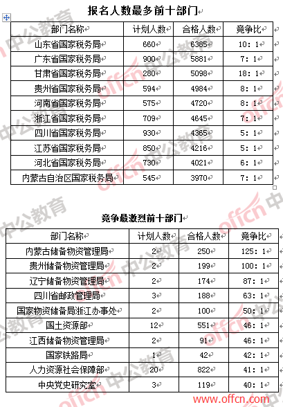 從數(shù)據(jù)來看,報名人數(shù)最多的前十大部門毫無懸念地被國稅“拿下”。與16日相比,山東國稅的報名人數(shù)由2703人激增到17日的6385人。去年同期,同樣居于“最高人氣部門”的山東國稅,報名人數(shù)有6404人??傮w來說,今年山東國稅的報名人數(shù)趨于穩(wěn)定。而廣東國稅16日報名人數(shù)4266人,17日增長至5881人。甘肅國稅16日3980人,17日增長至5098人。從這些數(shù)據(jù)不難看出,國稅依舊是競爭激烈的地方。