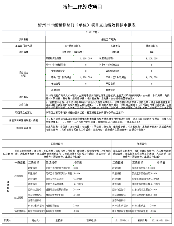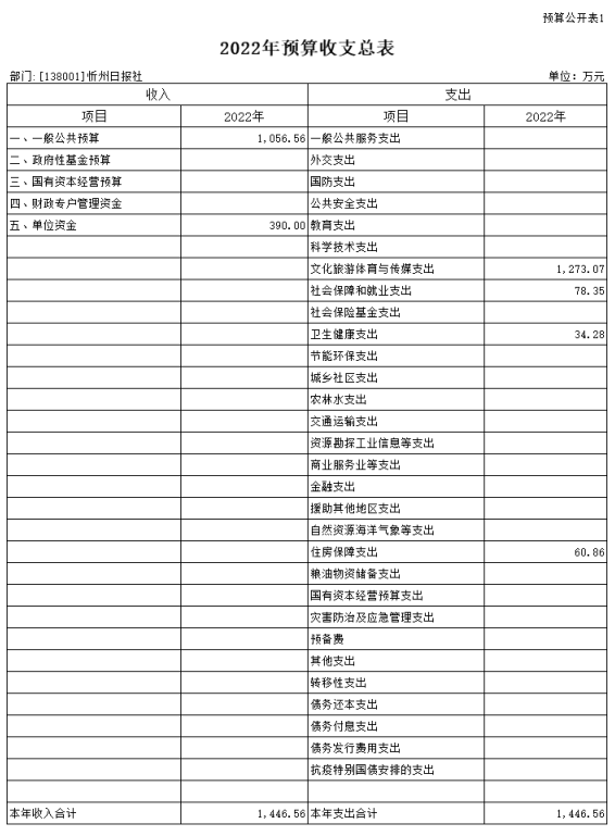 第二部分2022年度忻州日?qǐng)?bào)社預(yù)算報(bào)表