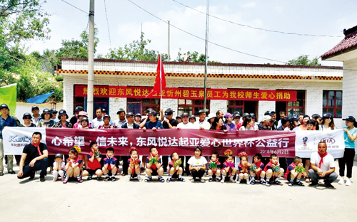 2018年6月2日“心希望信未來”東風(fēng)悅達(dá)起亞世界杯公益行活動如期成功舉行。本次活動由東風(fēng)悅達(dá)起亞廠家冠名支持,由忻州碧玉泉公司員工、部分保有客戶及家屬、意向客戶及媒體工作人員共60多人和代縣兩界溝小學(xué)全體師生共同參與。