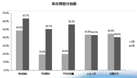 流通協(xié)會副秘書長郎學紅表示,3月,增值稅下調(diào)政策及部分地區(qū)國五/國六車型切換導致部分消費者持幣觀望,汽車市場整體銷量不佳。再加上經(jīng)銷商季度末為拿返利主動增加庫存,經(jīng)營壓力仍然較大。 市場需求現(xiàn)好轉 4月經(jīng)營狀況仍不樂觀 從庫存預警分指數(shù)來看,庫存指數(shù)、市場需求指數(shù)、平均日銷量指數(shù)環(huán)比上升;從業(yè)人員指數(shù)、經(jīng)營狀況指數(shù)環(huán)比下降。郎學紅表示,市場需求和日均銷量有明顯提升,然而由于經(jīng)銷商主動增加庫存和增值稅調(diào)整帶來的消費者觀望,使得經(jīng)營狀況并未出現(xiàn)好轉。