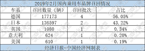 分車系來看,3月,德系和日系累計召回汽車數(shù)量占召回總量多達99.27%。其中,德系共4個品牌累計召回汽車177173輛,占召回總量的56.05%,數(shù)量最多;日系共2個品牌累計召回汽車136597輛,占比43.22%;此外,英國、意大利、美國各有一品牌發(fā)布了召回公告,但三車系總共召回數(shù)量不足總量的1%。值得注意的是,繼2月之后,3月仍無自主品牌發(fā)布召回信息。