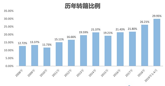 4月全國二手車市場交易量為120.06萬輛,環(huán)比下降4%,同比增長4.29%;1-4月,二手車累計銷售445.63萬輛,同比增長2.61%,跨城市交易額比例達到29.95%。羅磊表示,隨著全國各區(qū)域二手車流通的壁壘逐步消除,二手車全國自由流通越來越快捷,這一利好因素促使國內(nèi)二手車交易轉(zhuǎn)籍比例在過去10年里呈逐年上升趨勢。