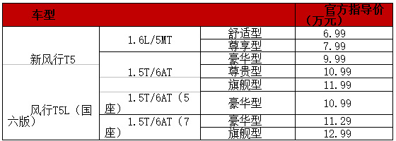 8月18日,東風(fēng)風(fēng)行宣布面向全新市場定位的戰(zhàn)略車型——“加大號智惠5座SUV”新風(fēng)行T5正式上市。包括此前預(yù)售款型在內(nèi),新風(fēng)行T5共有1.5T/6AT/1.6L/5MT兩種動力選擇、五款車型,售價從6.99萬元到11.99萬元,全面覆蓋入門級緊湊型SUV市場區(qū)間。同時上市的還有風(fēng)行T5L(國六版)的三款車型,分為5座版和7座版,動力均為1.5T/6AT,售價從10.99萬元到12.99萬元。