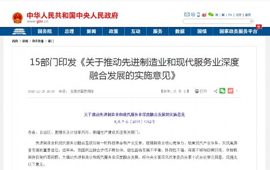 《關(guān)于推動先進(jìn)制造業(yè)和現(xiàn)代服務(wù)業(yè)深度融合發(fā)展的實施意見》