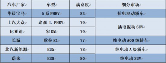 中國(guó)質(zhì)量協(xié)會(huì)表示,市場(chǎng)競(jìng)爭(zhēng)和質(zhì)量持續(xù)提高促使我國(guó)新能源汽車(chē)用戶(hù)滿(mǎn)意度指數(shù)大幅提升,尤其是高續(xù)航里程及中高端產(chǎn)品受到用戶(hù)青睞。測(cè)評(píng)數(shù)據(jù)顯示,續(xù)航里程越高的產(chǎn)品,滿(mǎn)意度也更高。主流合資品牌向插電混動(dòng)汽車(chē)市場(chǎng)投放成熟的中高端產(chǎn)品,這些產(chǎn)品的滿(mǎn)意度水平相對(duì)更高。
