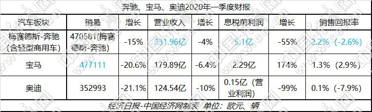 在疫情影響下,一季度BBA汽車(chē)業(yè)務(wù),除寶馬因去年同期“特別項(xiàng)目”導(dǎo)致基數(shù)較低,個(gè)別財(cái)務(wù)指標(biāo)實(shí)現(xiàn)正增長(zhǎng)外,BBA各主要財(cái)務(wù)指標(biāo)均出現(xiàn)下滑。對(duì)比來(lái)看,寶馬以近48萬(wàn)輛繼續(xù)在銷(xiāo)量上保持引領(lǐng);奔馳在營(yíng)業(yè)收入、息稅前利潤(rùn)、銷(xiāo)售回報(bào)率上實(shí)現(xiàn)領(lǐng)先;奧迪方面則依然墊底BBA。