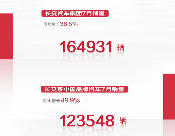 新華網北京8月8日電 8日,長安汽車對外公布的數據顯示,2020年7月延續(xù)上升勢頭,長安汽車單月整體銷售164931輛,同比增長38.5%。其中,長安系中國品牌汽車7月銷量達到123548輛,同比增長達49.9%。