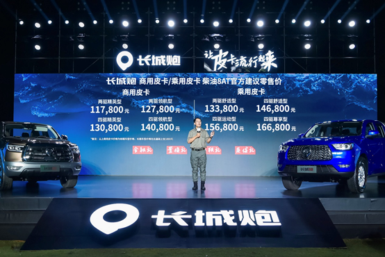 9月12日,長(zhǎng)城炮乘用皮卡、商用皮卡柴油8AT上市。其中,長(zhǎng)城炮商用皮卡柴油8AT售價(jià)區(qū)間為11.78萬(wàn)-14.08萬(wàn)元;乘用皮卡柴油8AT售價(jià)區(qū)間為13.38萬(wàn)-16.68萬(wàn)元。發(fā)布會(huì)上,還成立了長(zhǎng)城炮海南商戶聯(lián)盟。