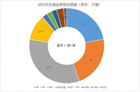面對汽車“新四化浪潮”,紅旗還加快在新能源領(lǐng)域布局。在本屆北京車展上,紅旗E-HS9開啟預(yù)售,并將于年內(nèi)上市。據(jù)悉,E-HS9在2021年-2025年的全生命周期內(nèi)共生產(chǎn)5.15萬輛車,平均每年生產(chǎn)1萬輛。根據(jù)長春市生態(tài)環(huán)保局在今年年初公布的信息,一汽集團對現(xiàn)有的轎車一廠進行改造,將紅旗E-HS3的產(chǎn)能提升至1.4萬輛/年。這表明E-HS9和E-HS3的產(chǎn)能,在2021年將有望支撐起紅旗2.4萬輛的銷量。