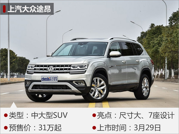 上汽大眾于2016年廣州車展發(fā)布了定位更高的中大型全新SUV-途昂(Teramont),新車將于今年3月29日正式上市。外觀上,新車采用全LED光源前大燈組、“W”型的日間行車燈,并與進(jìn)氣格柵連為一體。內(nèi)飾配置方面,新車擁有1.18平方米全景天窗、自適應(yīng)巡航、駕駛模式選擇、12.3英寸液晶儀表等。大眾為途昂配備了2.0T(高/低功率)和2.5T V6渦輪增壓發(fā)動機(jī),其中2.5T發(fā)動機(jī)的額定功率可達(dá)220kW,峰值扭矩500Nm,并提供四驅(qū)系統(tǒng)。