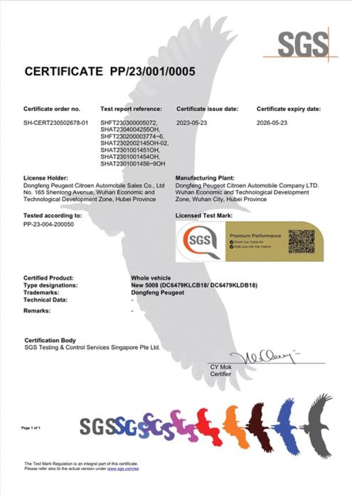 新5008成為汽車行業(yè)內(nèi)首個榮獲SGS金標(biāo)認(rèn)證的健康座駕