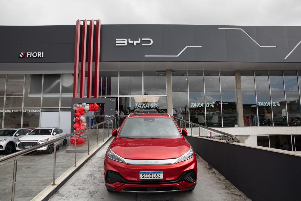 這是在巴西巴伊亞州拍攝的一家比亞迪純電動汽車銷售店鋪。新華社記者 王天聰 攝 中國汽車流通協(xié)會會長沈進(jìn)軍說:“我覺得我們?nèi)绻胱屛覀兊闹袊放谱叱鰢T,走進(jìn)別的國家,不僅僅是靠出口,要在當(dāng)?shù)亟⒐S,要跟當(dāng)?shù)氐墓?yīng)鏈體系建立起來,合作共贏,我覺得這是未來?!?/p>