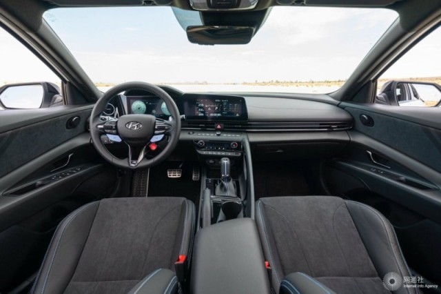 內(nèi)飾部分,伊蘭特N依舊保留了現(xiàn)代家族的雙聯(lián)屏布局,中控臺(tái)采用大面積皮革包袱。為進(jìn)一步突出運(yùn)動(dòng)屬性,新車(chē)的方向盤(pán)、門(mén)飾板以及座椅等處,還加入了翻毛皮材質(zhì)。