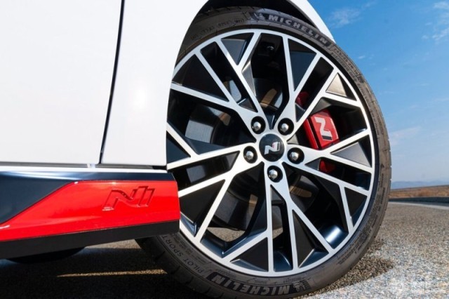 細(xì)節(jié)方面,伊蘭特N配備了規(guī)格為245/35 R19的雙色輪圈。同時(shí),其制動(dòng)卡鉗、側(cè)裙邊以及前后包圍處還采用了紅色涂裝,進(jìn)一步突出了整車(chē)的運(yùn)動(dòng)氛圍。