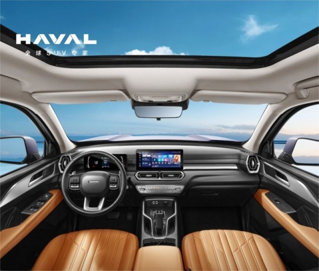 新哈弗H5內(nèi)部采用較為簡潔的設(shè)計風(fēng)格,并使用雙拼配色,還在中控臺及門板等處使用軟質(zhì)材料進(jìn)行包覆。與此同時,新車還配備全液晶儀表與12.3英寸懸浮式中控屏幕,搭配使用六邊形設(shè)計的空調(diào)出風(fēng)口與銀色飾條進(jìn)行點綴時尚感、科技感較強(qiáng)。