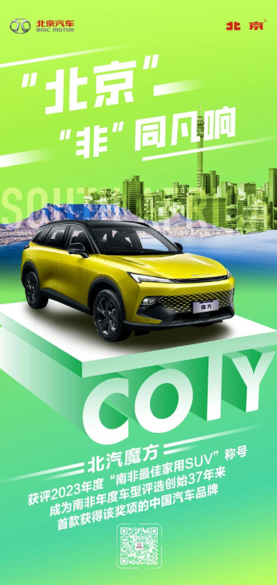 北汽魔方(BAIC BEIJING X55)獲評2023年度“南非最佳家用SUV”稱號