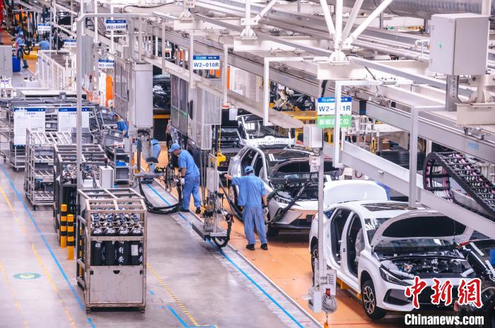 上汽集團乘用車寧德基地里,工人在新能源汽車生產(chǎn)線上作業(yè)繁忙。中新網(wǎng)記者 李南軒 攝 上汽集團乘用車寧德基地項目2018年落地寧德市,是福建省目前設(shè)計產(chǎn)能最大的新能源乘用車生產(chǎn)項目,2022年生產(chǎn)整車26.19萬輛,生產(chǎn)的車型遠銷東南亞、歐洲、南美、中東等地區(qū)的60多個國家。 自今年3月開啟汽車滾裝出口以來,寧德口岸新能源汽車出口不斷拓展,成為“寧德制造”加速“出?!钡男铝咙c。11月6日,由上汽集團乘用車寧德基地生產(chǎn)的2499輛新能源汽車搭乘“安吉23”滾裝輪前往泰國,這是寧德口岸單次最大批量新能源汽車出口,也是寧德口岸首次出口新能源汽車至泰國。 繆聯(lián)華說,截至11月30日,上汽集團乘用車寧德基地已累計在本港出口整車13139輛。 新能源汽車,是寧德市打造的四個具有國際競爭力的產(chǎn)業(yè)集群之一。為推動寧德新能源汽車產(chǎn)業(yè)高質(zhì)量發(fā)展,該市成立新能源汽車產(chǎn)業(yè)工作專班,協(xié)同推進全市新能源汽車產(chǎn)業(yè)發(fā)展各項工作;深化開放合作工作會商機制,定期召集海關(guān)、稅務(wù)等部門,分析研判內(nèi)外貿(mào)形勢,協(xié)調(diào)解決發(fā)展過程中遇到的堵點淤點難點問題。