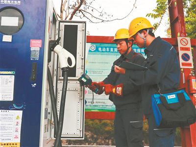 廣東電網(wǎng)工作人員在進(jìn)行充電樁運(yùn)維工作。