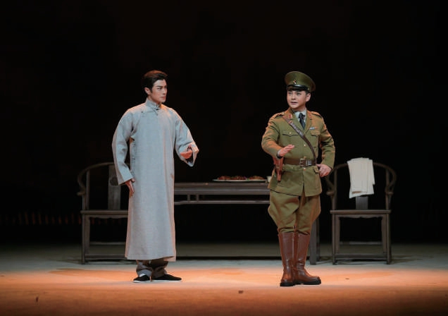 該劇劇本創(chuàng)作在深入挖掘并領(lǐng)會(huì)原著小說(shuō)精神內(nèi)涵的基礎(chǔ)上,充分融入京劇表現(xiàn)手法進(jìn)行呈現(xiàn)。唱腔設(shè)計(jì)由知名作曲家朱紹玉擔(dān)綱,行當(dāng)齊全,有旦角、老生、花臉、丑角,且每個(gè)行當(dāng)都有大量唱腔。尤其是“關(guān)敬陶”與“楊曉冬”合唱的激蕩人心的“雙嘎調(diào)”,音樂(lè)與劇情相互映襯,將全劇推向高潮。這些也都讓觀眾點(diǎn)贊、大呼過(guò)癮。
