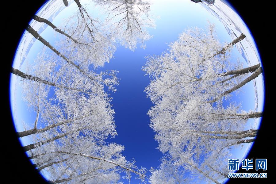 1月3日在新疆阿勒泰地區(qū)富蘊縣吐爾洪鄉(xiāng)拍攝的霧凇美景。藍(lán)天映襯下的冰雪世界顯得一片肅穆。 新華社發(fā)(丁寧 攝)