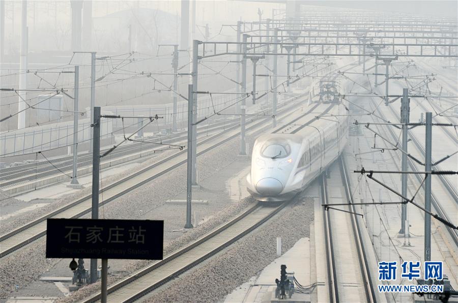 一輛動(dòng)車(chē)組列車(chē)駛離石家莊火車(chē)站(1月9日攝)。 1月10日零時(shí)起,全國(guó)鐵路實(shí)行新的列車(chē)運(yùn)行圖,增開(kāi)旅客列車(chē)285.5對(duì),其中增開(kāi)動(dòng)車(chē)組列車(chē)281.5對(duì)。運(yùn)行圖調(diào)整后,全國(guó)鐵路開(kāi)行旅客列車(chē)總數(shù)達(dá)到3142對(duì),其中動(dòng)車(chē)組列車(chē)1980.5對(duì)。新華社記者 牟宇 攝
