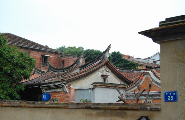 殖民地外廊式建筑的傳播——日本領(lǐng)事館舊址 19世紀(jì)中葉,外國(guó)人進(jìn)入鼓浪嶼島后,最初租用民房,之后開始自己建設(shè)領(lǐng)事館、禮拜堂、公館、洋行和住宅、學(xué)校、醫(yī)院等,這一時(shí)期外國(guó)人建造的建筑,除了協(xié)和禮拜堂等少數(shù)幾座例外,基本上都是殖民地外廊式建筑,這是一種具有功能外廊空間的建筑樣式。 日本領(lǐng)事館,建于1897年,現(xiàn)編門牌鹿礁路24號(hào)至28號(hào),離英國(guó)領(lǐng)事館僅一箭之地,翼角可望。該建筑四周設(shè)有連拱券柱式外廊,雙柱桁架,樓頂女兒墻與外廊護(hù)欄,采用的卻是本土燒制的紅陶寶瓶狀透空欄桿,這是維多利亞時(shí)代英式建筑的堂皇高軒,與中國(guó)式古樸典雅的折中。1928年,日本領(lǐng)事館在其館側(cè)又建造兩幢紅磚樓,以做日本警署及其公寓所用,其中28號(hào)樓為典型的日本明治維新后的和式現(xiàn)代建筑。 此建筑典型特征就是全部用清水紅磚飾面,墻體厚實(shí),窗戶窄長(zhǎng),封閉性強(qiáng),這樣的設(shè)計(jì)顯然有利于保暖御寒,成為東洋建筑在鼓浪嶼建筑中獨(dú)一無(wú)二的類型。 華僑建筑的早期發(fā)展——番婆樓