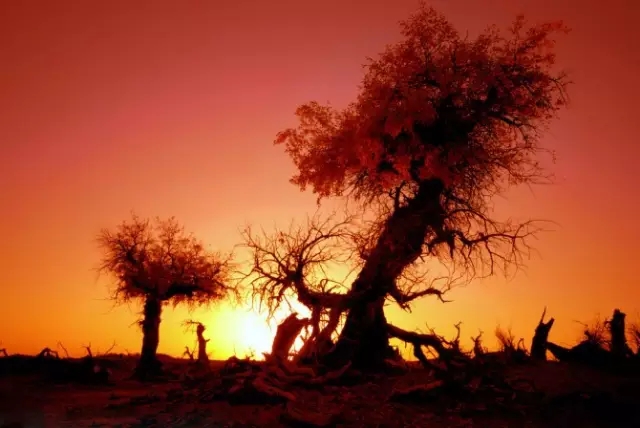 胡楊林是塔里木河流域典型的荒漠森林草甸植被類型,從上游河谷到下游河床均有分布。雖然胡楊林結(jié)構(gòu)相對(duì)簡(jiǎn)單,但具有很強(qiáng)的地帶性生態(tài)烙印。無(wú)論是朝霞映染,還是身披夕陽(yáng),它在給人以神秘感的同時(shí),也讓人解讀到生機(jī)與希望。據(jù)有關(guān)資料顯示,人們還夸贊胡楊巨大的生命力是“三個(gè)一千年”,即活著一千年不死,死后一千年不倒,倒后一千年不朽。