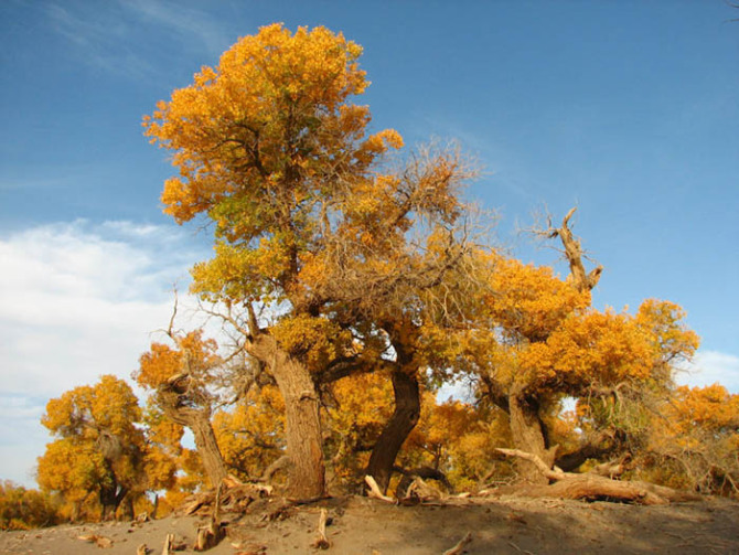 巴州旅游局局長(zhǎng)馬彥成說(shuō), 由于胡揚(yáng)具有驚人的抗干旱、御風(fēng)沙、耐鹽堿的能力,能頑強(qiáng)地生存繁衍于沙漠之中,因而也被人們贊譽(yù)為“沙漠英雄樹(shù)”。巴州輪臺(tái)縣羅布人村寨、羅布湖、及若羌縣的阿拉干沿途景色都非常迷人,希望游客到此賞游,將會(huì)領(lǐng)略到不一樣的美麗風(fēng)光。