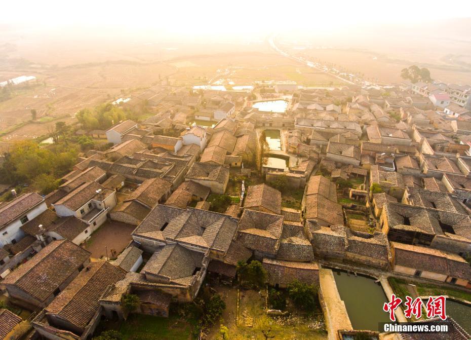 12月10日,航拍位于江西金溪縣有著600多年歷史的中國歷史文化名村、中國傳統(tǒng)村落竹橋古村,俯瞰全村,形似一柄巨扇。該村現(xiàn)保存有明代所建民居8幢,明代祠堂1幢,其余為清代建筑,青磚灰瓦,樸實(shí)素雅,為贛派建筑最典型的代表。村前溪水長流,良田萬頃,村后茂林修竹,鳥鳴樹幽,身歷其境,如入畫中。傅建斌 攝