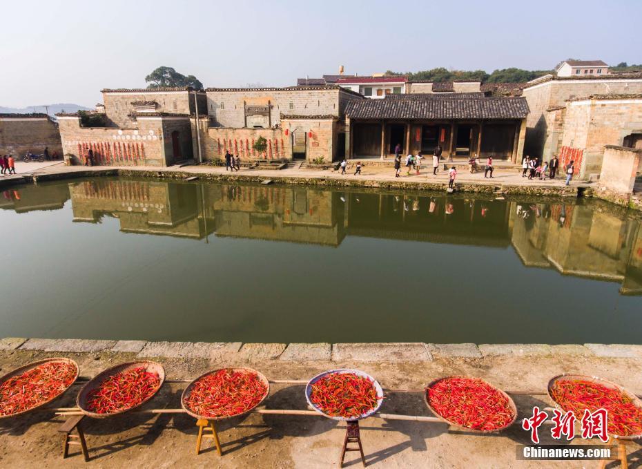12月10日,航拍位于江西金溪縣有著600多年歷史的中國歷史文化名村、中國傳統(tǒng)村落竹橋古村,俯瞰全村,形似一柄巨扇。該村現(xiàn)保存有明代所建民居8幢,明代祠堂1幢,其余為清代建筑,青磚灰瓦,樸實(shí)素雅,為贛派建筑最典型的代表。村前溪水長流,良田萬頃,村后茂林修竹,鳥鳴樹幽,身歷其境,如入畫中。傅建斌 攝