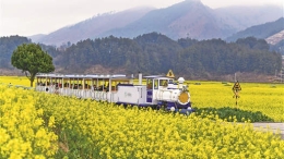 3月3日,在貴州省貴定縣盤江鎮(zhèn)“金海雪山”景區(qū),游客乘坐觀光小火車觀賞油菜花。 近年來,貴州省貴定縣盤江鎮(zhèn)依托當地農業(yè)資源優(yōu)勢,圍繞壩區(qū)高效農業(yè)發(fā)展定位,大力發(fā)展“水稻+油菜+稻田魚”特色農業(yè)項目,推動生態(tài)農業(yè)與鄉(xiāng)村旅游融合發(fā)展,有效帶動當地群眾增收,助力鄉(xiāng)村振興。 新華社記者 楊文斌 攝 (責任編輯:梁艷) |