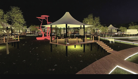 游玩至傍晚需要一處別樣的休憩之所,在鸛雀樓景區(qū)有一家很值得住一晚休息放松的民宿,那就是鸛棲苑民宿酒店。這個(gè)酒店以鸛雀樓的花海為依托,展開建筑的單體布局,又通過陣列組合形成一個(gè)大花瓣,客房之間用棧道連接,白天賞花海,夜晚觀花燈,好不自在。酒店還有一個(gè)可以露營的營地,緊鄰黃河還可以燒烤。在接待中心頂層還有一個(gè)觀光平臺(tái),有卡座可以休憩和賞景。夜晚的彩燈亮起,繁花縈繞,讓人仿佛置身仙境。