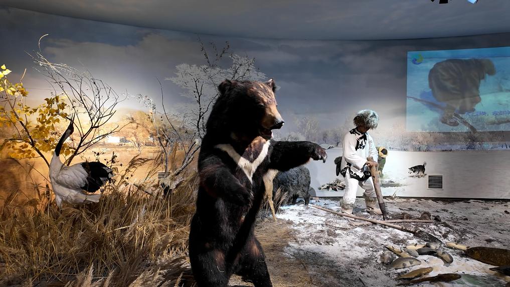 同江市赫哲族博物館內(nèi)復(fù)原的赫哲族先民生活場景。新華社記者 吳悠 攝