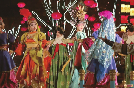 到了唐玄奘塑像處,馬路對(duì)面便是大唐不夜城的北入口,大唐不夜城22場(chǎng)免費(fèi)演出,每場(chǎng)都是10分鐘,并不一定能全部看完,可以隨心駐足觀看。