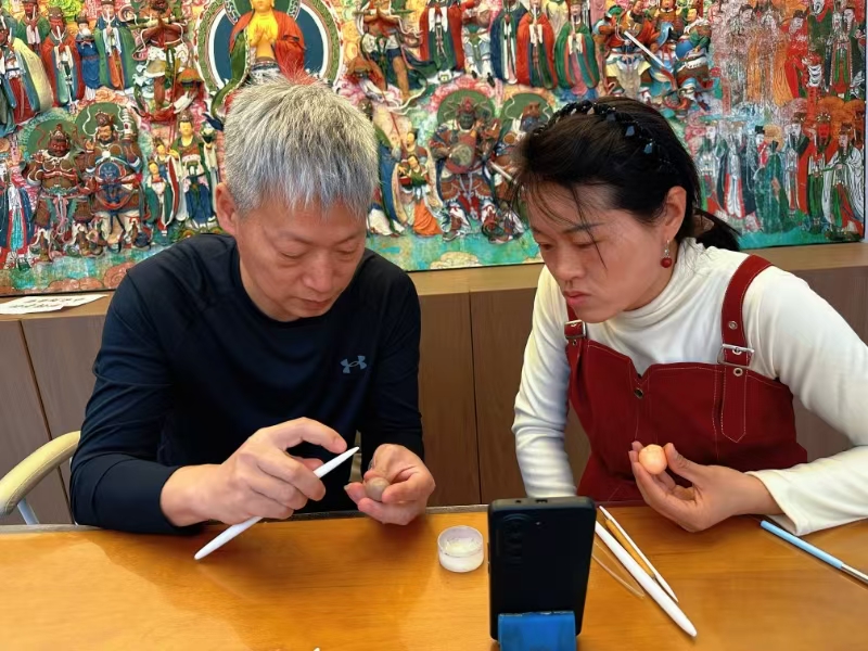 “在這條街上,聚集了很多和我一樣的手藝人?!贝蠛C嫠芩诘年P(guān)帝廟北巷文創(chuàng)街上,一家家非遺店鋪林立——葫蘆烙畫店鋪內(nèi),忻州市忻府區(qū)葫蘆烙畫非物質(zhì)文化遺產(chǎn)代表性傳承人李云珍正手拿烙鐵在葫蘆上創(chuàng)作《八駿圖》;“草木染”非遺體驗店里,有游客在體驗扎染的樂趣;鋦藝里,游客圍在忻州市忻府區(qū)鋦瓷藝術(shù)非物質(zhì)文化遺產(chǎn)代表性傳承人王克劍身邊,看一件破碎的瓷器如何經(jīng)過他的雙手重生……